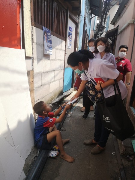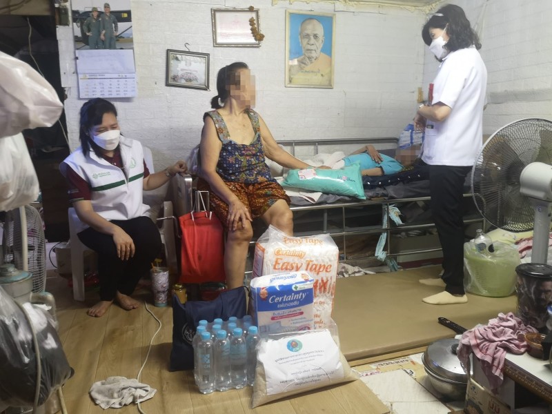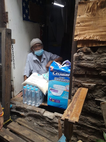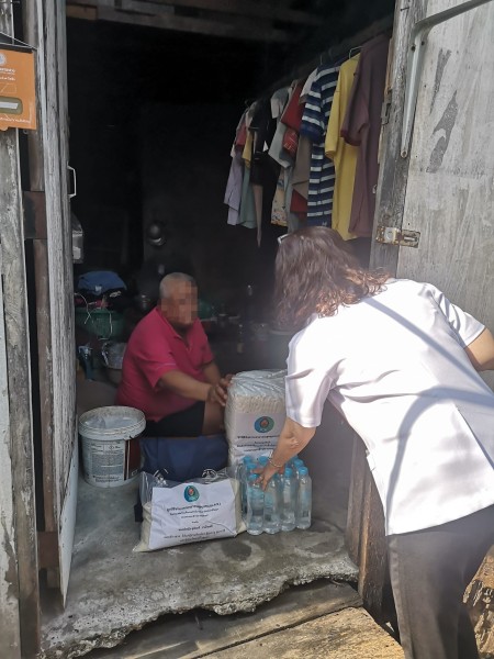 มูลนิธิช่วยการสาธารณสุขชุมชนฯ ร่วมกับ นักสังคมสงเคราะห์ ศูนย์บริการสาธารณสุข 41 คลองเตย นำถุงยังชีพ ข้าวสาร แพมเพิร์ส หน้ากากอนามัยผู้ใหญ่และเด็ก