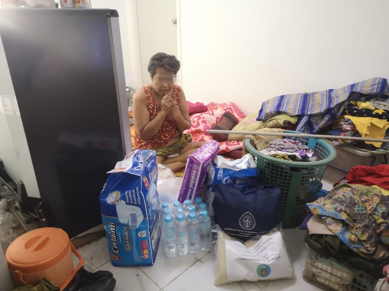 นำถุงยังชีพ ข้าวสาร แพมเพิร์ส น้ำดื่ม ขนม หน้ากากอนามัยผู้ใหญ่และเด็ก มอบให้ผู้ป่วยติดเตียง ผู้สูงอายุ และผู้ยากไร้ในชุมชนแออัด