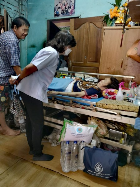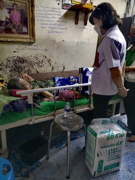 นำถุงยังชีพ ข้าวสาร ผ้าอ้อมสำเร็จรูป น้ำดื่ม ขนม หน้ากากอนามัยผู้ใหญ่และเด็ก มอบให้ผู้ป่วยติดเตียง ผู้สูงอายุ และผู้ยากไร้