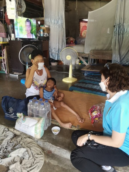 นำถุงยังชีพ ข้าวสาร ผ้าอ้อมสำเร็จรูป น้ำดื่ม ขนม หน้ากากอนามัยผู้ใหญ่และเด็ก