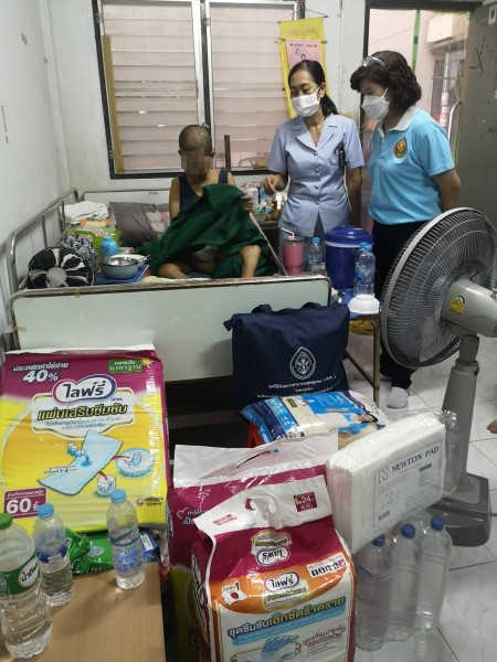 นำถุงยังชีพ ข้าวสาร ผ้าอ้อมสำเร็จรูป น้ำดื่ม ขนม หน้ากากอนามัยผู้ใหญ่และเด็ก มอบให้ผู้ป่วยติดเตียง ผู้สูงอายุ และผู้ยากไร้ในชุมชนหลังวัดลาดปลาเค้า