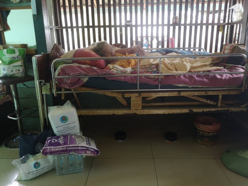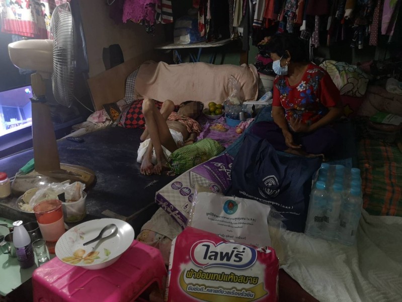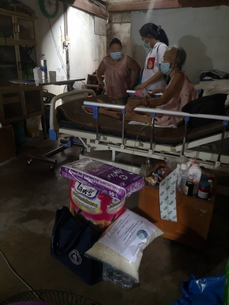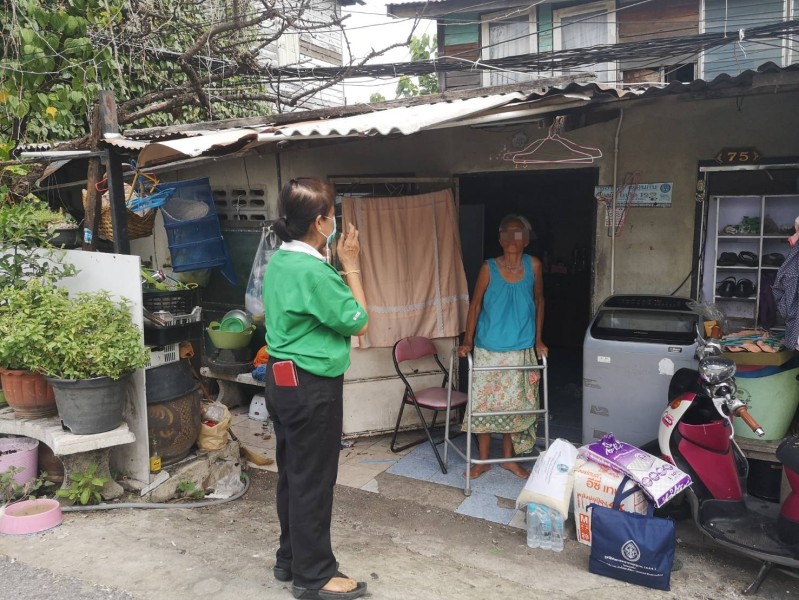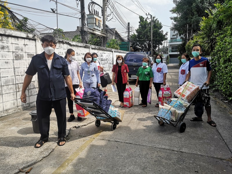 นำถุงยังชีพ ข้าวสาร แพมเพิร์ส น้ำดื่ม ขนม หน้ากากอนามัยผู้ใหญ่และเด็ก มอบให้ผู้ป่วยติดเตียง ผู้สูงอายุ และผู้ยากไร้ในชุมชนแออัด