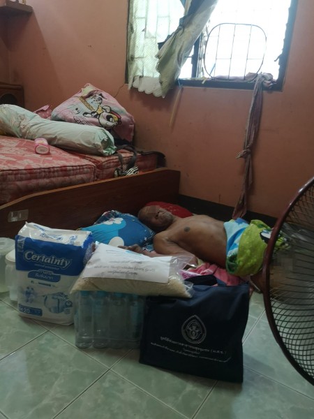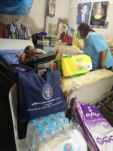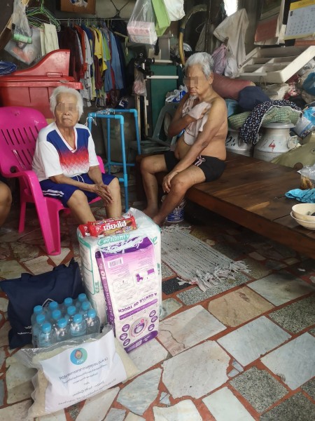 นำถุงยังชีพ ข้าวสาร แพมเพิร์ส น้ำดื่ม ขนม หน้ากากอนามัยผู้ใหญ่และเด็ก มอบให้ผู้ป่วยติดเตียง ผู้สูงอายุ และผู้ยากไร้ในชุมชนแออัด